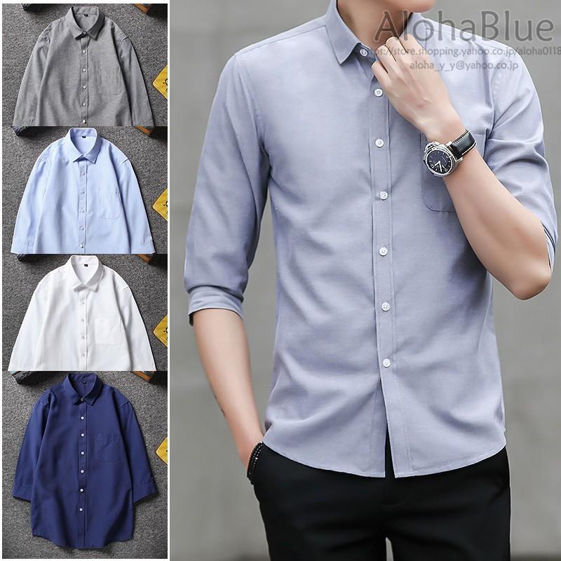 メンズ カジュアルシャツ 開襟シャツ シャツ 無地 ワイシャツ 七分丈 通勤 紳士服 ビジネスシャツ 21 夏 B Alohablue 通販 Yahoo ショッピング
